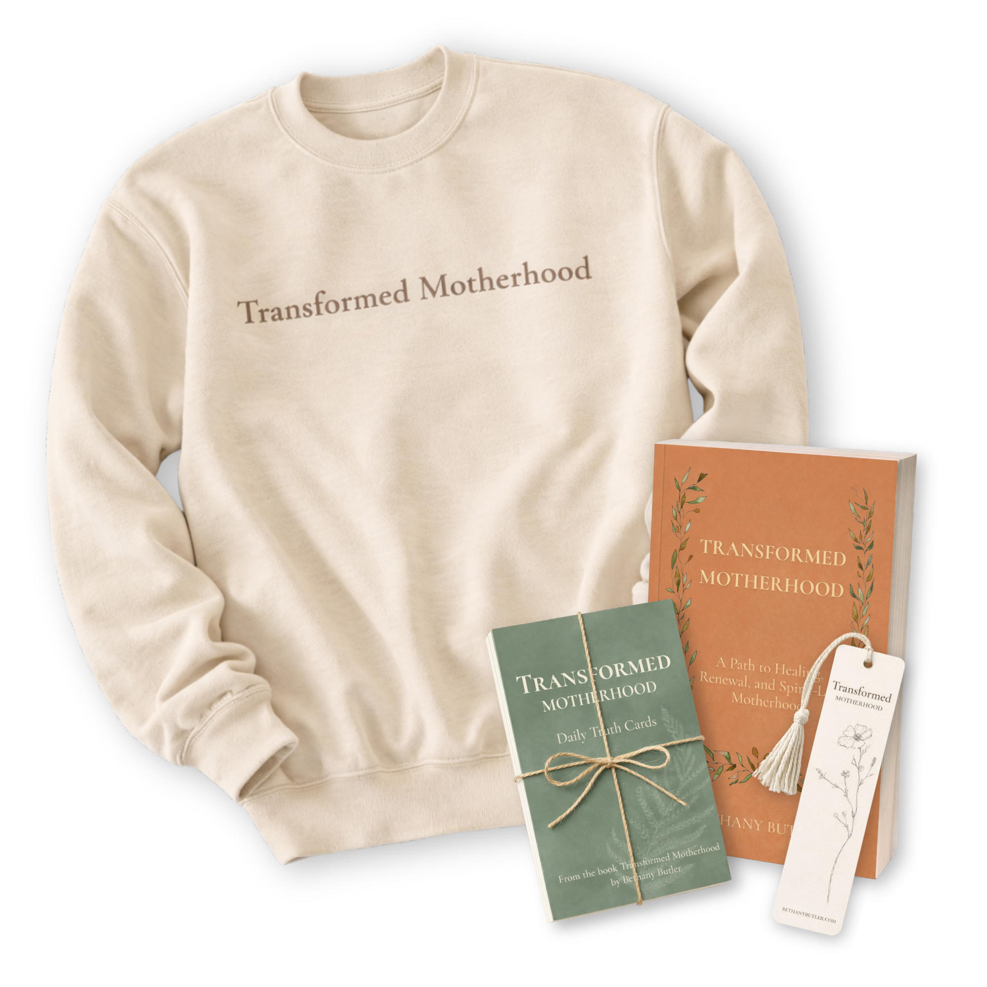 - 👕 A cozy, limited-edition hand screen-printed sweatshirt designed to reflect the heart and message of Transformed Motherhood